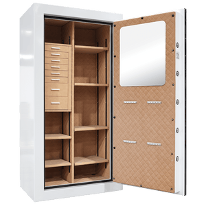 The AMSEC JS5930E5 Tall & Wide Fire Rated Jewelry Safe is designed for the collector who needs more space, more organization, and more presence. With its expanded height and width, this model transforms secure storage into a true closet centerpiece, elegant, organized, and built to protect what matters most.