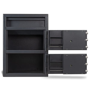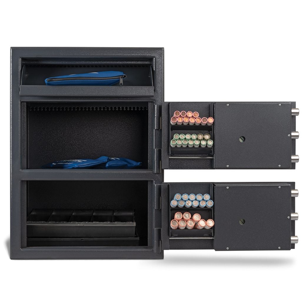 CLICK HERE to watch our video on “What to Do When Your Safe Arrives.”AMSEC's "B" Rate Money Manager Series Undercounter Two Door Depository Safes are the most effective cash handling systems available. Engineered to help you achieve total cash control.