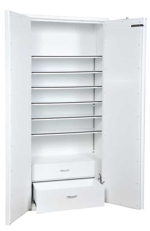 The safe comes available with five interior shelves and optional drawers. Never miss any pills again with the ease that you will receive with the PSE-28. Hospitals and health care facilities prefer the many uses of the AMSEC PSE-28. Get extra security for your controlled prescriptions today.