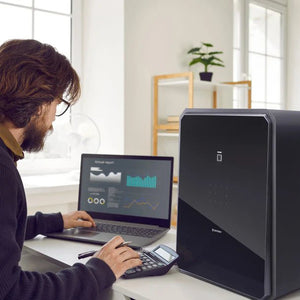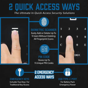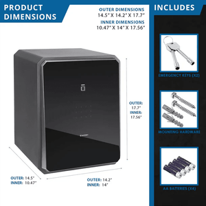 The Barska AX13936 Obsidian 9-User Touchscreen Biometric Keypad Security Safe combines modern technology with an elegant design, offering advanced security for your valuables. Constructed with solid 2mm steel, this safe resists tampering while ensuring long-lasting durability. Equipped with motorized deadbolts and a biometric scanner that stores up to six fingerprint scans and one PIN code per user with nine registered individual users, it provides quick and secure access. A lockout mode prevents unauthorized entry after too many failed attempts, ensuring maximum protection.