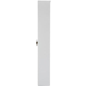 The outside of the Barska CB12492 160 Key Cabinet with White Tags is locked by a lock key and comes with 2 keys. There are 4 holes in the of the unit to mount it to a solid surface. The mounting hardware comes standard. The outside dimensions are 22.00" high by 15.00" wide by 3.00" deep. This allows you to mount it in a convenient location and it won't take up a large amount of space.