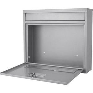 The top slot of the Barska CB13252 Locking Wall Mount Mailbox will accept items up to 10" in width. This mailbox can be mounted directly to a wall using the included mounting hardware. It can be used in a workplace environment or at home.