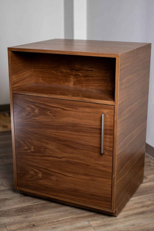 Choose between three spacious drawers or a door with shelves—perfect for storing watch boxes, documents, or other valuables. A top cubby provides extra storage for powered devices like music receivers, all supported by a built-in, surge-protected power source. Adjustable floor levelers ensure a stable setup even on uneven flooring, and since the cabinet is fully assembled upon delivery, setup takes only minutes—no carpentry or wall cutting required. Whether in a bedroom, office, or dressing room, the BlumSafe Concealment Cabinet adds a layer of discreet sophistication to any space.