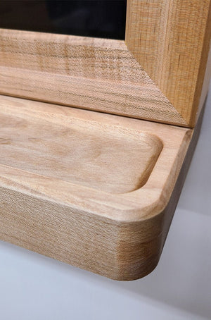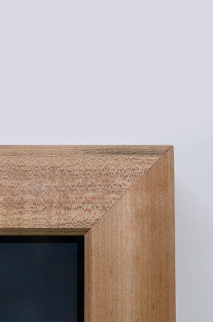 The beautiful carpentry of the wood frame makes the safe perfectly hidden so that it is unknowable to any robber. The screen can be locked to the wall with an optional lock bar/valet tray using an RFID credit card "key" for easy unlatching to reveal your BlumSafe.