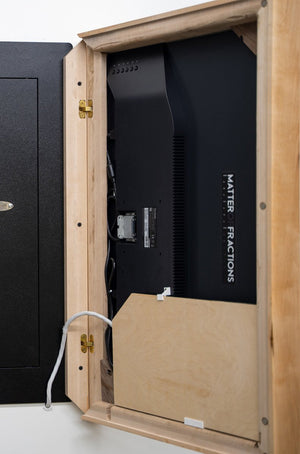 The BlumSafe "The Screen" is a cool way to conceal your BlumSafe Luxury Watch Winder Wall Safe or BlumSafe Luxury Watch Winder Wall Safe Gen 2.0 USA Built. It is a secretly-hinged 32" (diagonal) electronic photo album and information board that goes in front of your safe, any wall safe, or wall nook. If you don't have a wall safe or a BlumSafe, or have a wall with a 2" x 4" deep construction, consider the Wall Nook.