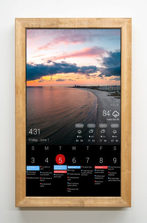 The Screen’s “business end” consists of a 32” (diagonal) IPS high definition computer monitor with 1920X1080 resolution, coupled with its brains — a Raspberry Pi computer connected to the DAKBoard display board cloud service. We considered going with a homemade configuration, but the DAK product is so much easier for customers to use and well-supported. Just connect it to your wifi network, log in and either use one of many templated layouts or create your own completely custom and unique configuration of all your content DAKBoard uses a simple drag and drop, resizable block framework (options beyond a basic template are available with an inexpensive, optional subscription service). This video shows the initial screen setup and configuration. In short — zero maintenance but 100% customizable — the BlumSafe way.