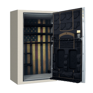 Inside, Browning's Full DPX Storage System makes the most of every inch. The Quick Access DPX Barrel Rack, adjustable CMS shelving, and door-mounted pistol storage allow you to customize the layout around your firearms, optics, and gear. Premium touches like the factory-installed LED light kit, electrical outlet, Scope Savers, and soft beige fabric interior elevate everyday use. Finished in textured black or putty with decorative metal door tags and American flag accents, the Hunter Deluxe Series-49 Tall delivers both performance and pride of ownership. Built in the USA, it's a long-term storage solution designed to support every season in the field.