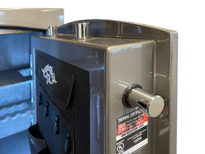 Security is built into every layer of the TY-25. The Double-Steel Door Casement and Classic Steel Arch Doorway provide a reinforced foundation that resists prying and forced entry at the door frame, while Champion's Auto-Relock system and Diamond-Embedded Armor Plate protect the lock against drilling attacks. The Radial Gear Drive delivers four-way active boltwork with 14 bolts, and the Slip Clutch Handle protects the locking mechanism under attack. This safe offers 2 hours of fire protection at 1,200 degrees F, with three layers of fire insulation and a heat-expanding fire seal, ensuring your collection is protected even in a severe fire event. It is UL RSC Burglary rated and built with US-made steel, backed by a lifetime warranty.