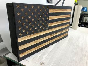 Inside the compartment is over 2" of foam to protect your valuables and weapons. It also holds them in place so they don't slide around. Each American Flag Gun Box comes equipped with a magnetic locking system so that you can safely store your weapons out of reach of children. Handcrafted in the USA and available in 8 different colors, the American Flag Gun Box will look amazing on your wall!