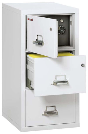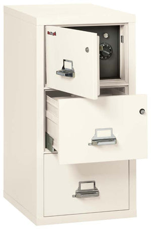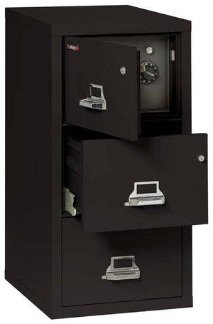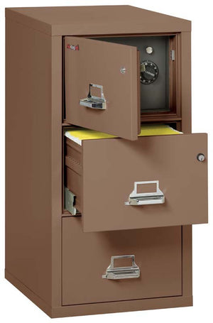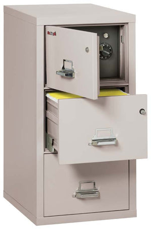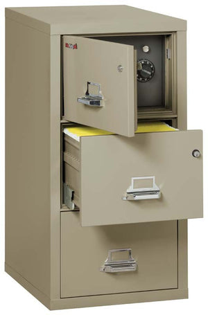 The FireKing 3-2131-CSF 3 Drawer Legal Safe In A Fire File Cabinet is a unique file cabinet that cannot only help protect your valuable documents and media from fire, impact, and water damage in both your business or home, it has a clever design to conceal a safe behind a false top drawer panel.
