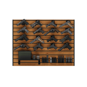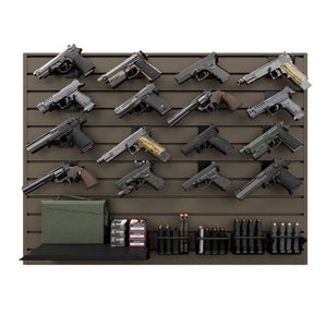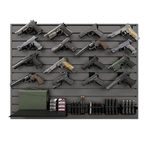 • This comprehensive pistol display package organizes your entire collection alongside your supply of magazines, ammunition, and other gear.