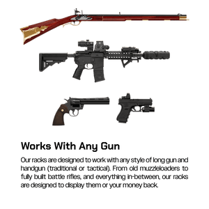 This display is a perfect addition to any vault room, armory, sales floor, or man cave. You'll get American quality and the large selection of finishes helps it fit into any rooms decor. It's time to get your guns out of the way, but not out of sight or mind with the HD109 from Hold Up Displays