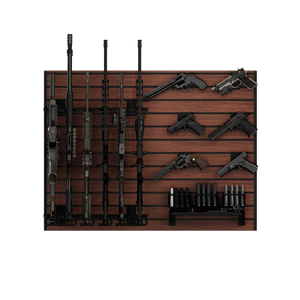 This bundle is designed to hold up to six long guns, six pistols, and twelve magazines, with the included heavy-duty steel shelf providing space for ammo, optics, or additional gear. As your collection grows, you can seamlessly add additional panels and accessories.