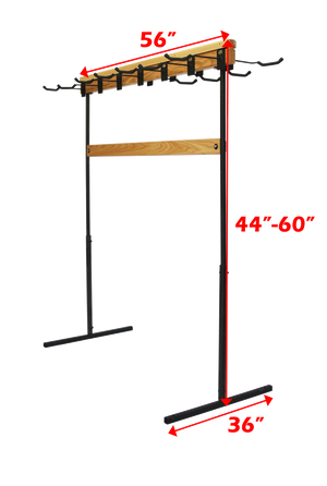 Proudly made in the USA and backed by a lifetime warranty, the Hardwood Crossbow Rack is engineered for everyday use, from retail display to organized storage. Mounting hardware is included, and the assembled rack measures 44-60 inches high, 56 inches wide, and 36 inches deep.