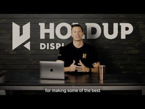 The Hold Up Displays Left Facing In Barrel Pistol Holder is designed to hold any handgun in a safe and attractive manner. It's barrel post is coated with a durable and protective lining to protect your firearms. It can be purchased for use with Hold Up Displays 3" slatwall panels or can be mounted directly to your wall with the flatwall option.
