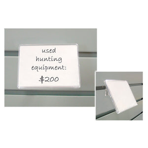 The Hold Up Displays Slatwall Information Holder HD23 is a simple, effective way to display product details directly next to firearms, gear, or accessories on your wall system. Designed to fit Avery 5392 name badge insert refills, it keeps pricing, specifications, or notes clearly visible while protecting them behind a removable plastic cover. The holder can be angled in any direction for easy viewing and installs seamlessly into any slatwall or pegboard, making it a flexible solution for showrooms, gun rooms, or retail displays where clean organization and clear information matter.
