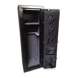 The Hollon HGS-11E Hunter Series Gun Safe has 12 gauge steel on both the walls and the door. This means that the steel on this “entry level” gun safe is thicker than most of the gun safes found at this level. Additionally, the gun safe includes 1.25 inch locking bolts on all four sides for pry attack resistance. It has drill and ballistic resistant hard plate to protect the interior of the lock and the only practical way through it is by melting it. Although this safe comes with an outstanding electronic lock, even if a burglar were to get through that then they must deal with the auxiliary relocking system that will work even if there is no lock on the safe. This safe also comes standard with a convenient pistol pocket system on the door. This allows you to make the most of your interior storage for all types of items such as handguns and spare rounds. It also boasts a new plush interior with a durable “pillow trim.” The multi-flex shelving system allows you to maximize the most of your interior space and it also comes with four mounting holes and hardware.