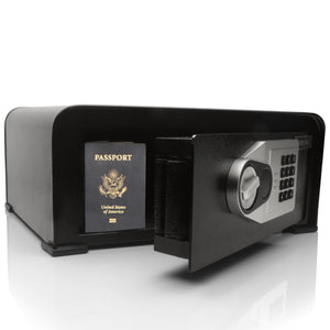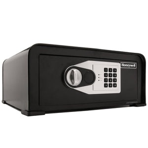 CLICK HERE to watch our video on “What to Do When Your Safe Arrives.”The Honeywell 5705 Medium Sized Steel Security Safe has a unique shape with a curved top. It is designed to be used in hotels, dorm rooms, bedrooms and even offices to store valuables, passports, cash, iPads and even laptop computers. It has a programmable 3 to 8 digit electronic lock with LED display where you can set your own custom combination. Emergency override keys (2) come standard in case you forget your combination, the batteries die or something happens to the lock.