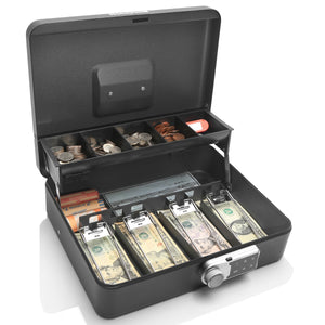 If you accept cash such as at your business, sporting event, or even at a yard sale, having something to secure it in is important. The Honeywell 6213DG Digital Tiered Cash Box is the perfect solution. It has a digital lock with a customizable 4 digit code. This means you never need to worry about losing a key. You can secure access to cash, coins, and other valuables inside.