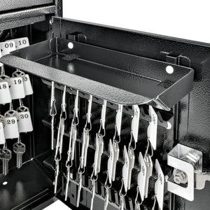 Its durable wall-mounted design features adjustable key shelves. The 4-digit combination lock offers up to 10,000 possible combinations, providing peace of mind with its customizable security. Plus, it comes with backup manual override keys for added convenience. The patented anti-fish collection bin ensures that deposited keys do not get mixed up with the stored ones, preventing unauthorized access.