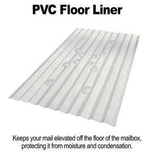 For ease of installation, the mailbox has a patented Fast-Trak Mounting Plate that allows quick setup on various posts and mounts. It also includes stainless steel hinges, ensuring smooth operation, and a vandal-resistant flag for added durability. Additional items include three keys, reflective house numbers, a floor liner, and installation hardware.