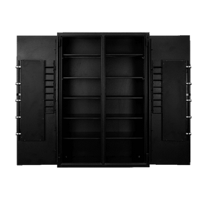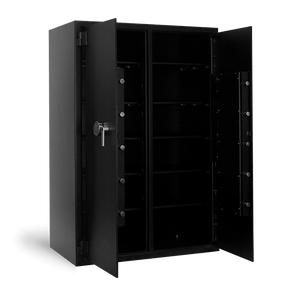 The Pacific Safe UC724827LR Inventory Control Double Door B-Rate Burglary Safe allows your business to separate valuable inventory such as cell phones, tablets, and narcotics into two compartments. The left section has five adjustable shelves for organization. This ensures that only authorized personnel have access. Meanwhile, the right compartment has five adjustable shelves and provides a secure enclosure for cash trays, spare change, and other valuable items that demand protection. Each door has rolled coin holders for extra storage. This safe would give you over 40 cubic feet of storage space inside.