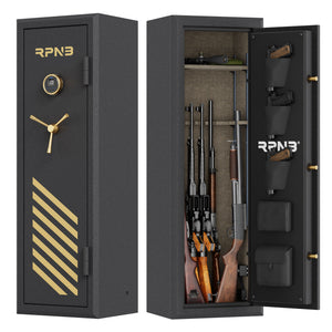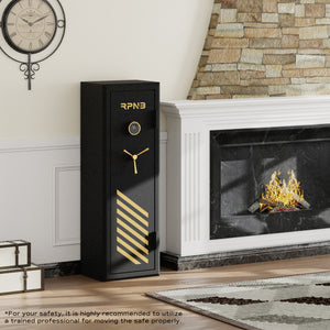 The RPNB RPFS10-B 10-Gun Fireproof Biometric Gun Safe in black is an excellent solution for heavy-duty fireproof security and optimal firearm storage. Crafted from anti-theft solid steel, this safe is built to withstand threats and provide peace of mind. A weight exceeding 180 pounds ensures robust protection for your firearms.