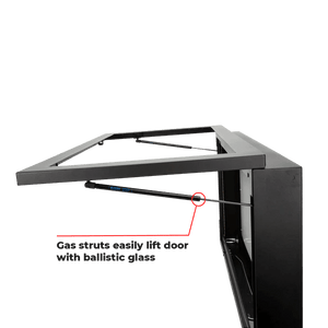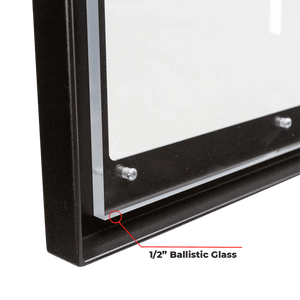 • Local fabricators make each safe in Illinois. It is built with a 1/2" Ballistic Glass cut to Secure Display's specifications. The remaining pieces and parts are sourced from a variety of manufacturers. The final assembly takes place in the Aurora, IL, USA facility
