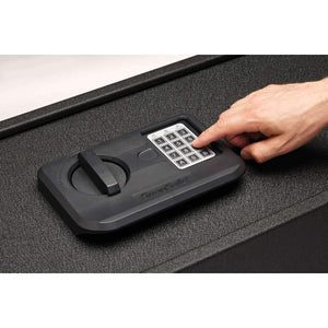 The outside of the SnapSafe 75406 Trunk Safe II is built with heavy-duty 13-gauge steel on the body and a rugged 6 gauge steel door featuring eight interior locking bolts. The internal hinges and premium gas shocks allow the door to open smoothly. The outside is protected by a digital lock with a key backup in case something happens to the lock or you forget your combination. The lock can be programmed with a 3 to 8 digit access code. The handles on the outside help with moving this Trunk Safe in and out of your vehicle.