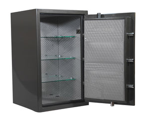 Of course they made the fit and finish just as good as the protection. It has a nice-looking metal grey gloss metallic exterior finish that fits in any decor at the home or office. The inside has a quilted vinyl interior and 3 removable tempered glass shelves. An interior mounted light is included to light up your contents in the dark.