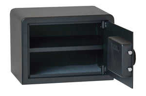 The outside of the Sanctuary SA-PV2M Security Safe is painted a black matte finish. There is a shelf inside to help organize your items and four key hooks on the door. A felt pad on the bottom helps to protect your contents. There is a 3-year hassle-free warranty, one of the best in the industry. The outside dimensions are 10.00" high by 14.00" wide by 10.00" deep, and weigh 19 pounds.