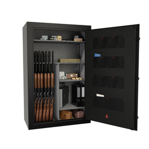 The latest addition to the Sports Afield lineup is the SA5540DOM-H Domain Series Gun Safe. This is the largest size in the series. It offers a practical solution for securing firearms without compromising on space. Designed to accommodate 40 long guns, its fully carpeted barrel rest positions protect your firearms from scratches while ensuring a snug fit.