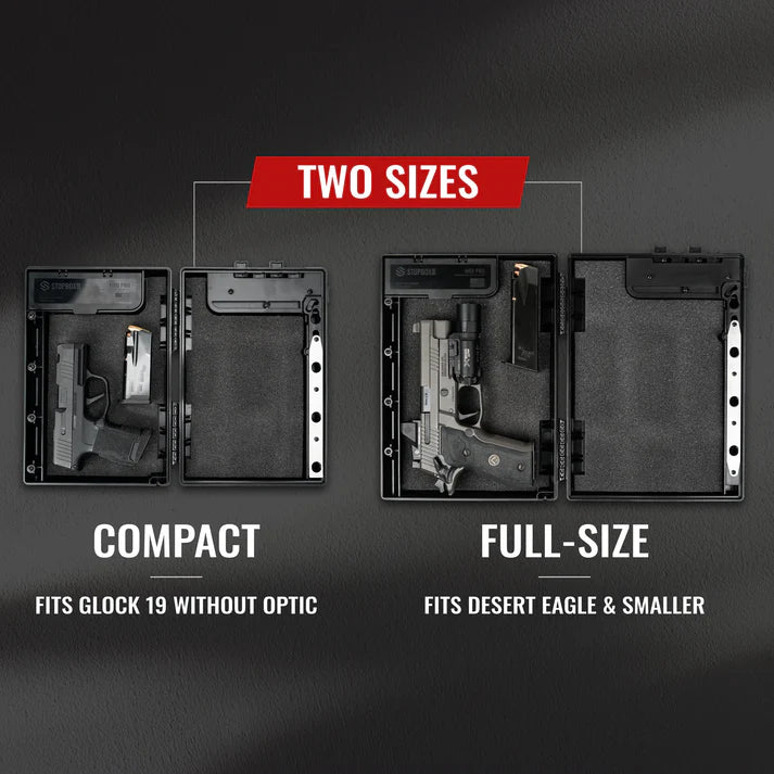 The StopBox PRO is a portable, mechanical pistol safe designed for fast, instinctive access. Whether you’re protecting your handgun at home, carrying concealed, or traveling with a firearm, the StopBox PRO lets you lock it down with confidence, no batteries, no electronics, and no worries about dead keypads or failed biometrics.