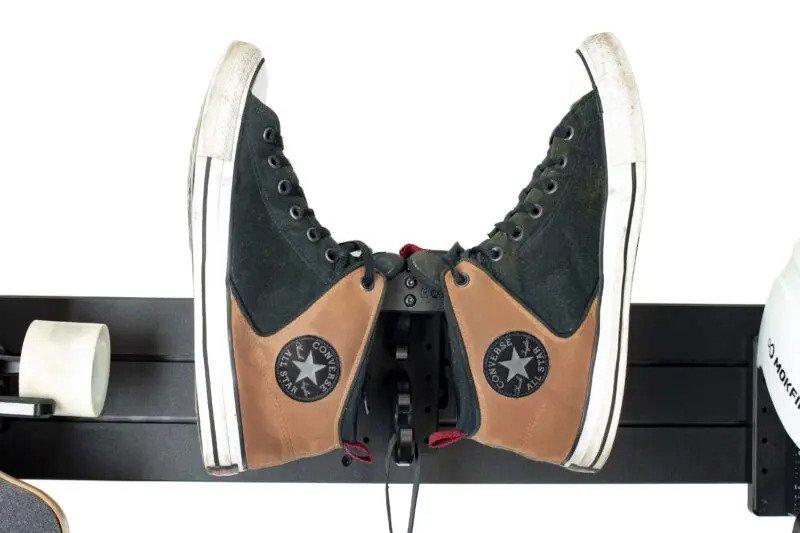 Included in the Tactical Walls MWS Hanging Longboard Package is one panel which can be installed in a garage, bedroom, shop, or anywhere that you want to hang and store your gear. There is a mount for your longboard, a shoe mount for a pair of shoes, a helmet mount for your helmet, and a hanger/hook to hang up your favorite shirt.