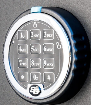 The V-Line SRT Vault is locked by an S&G Spartan Digital Lock. This lock is UL Rated and is the same lock used on large gun safes. It features a master user and a single-user code. The lock can be rotated 360 degrees to accommodate left or right and door opening or horizontal use.
