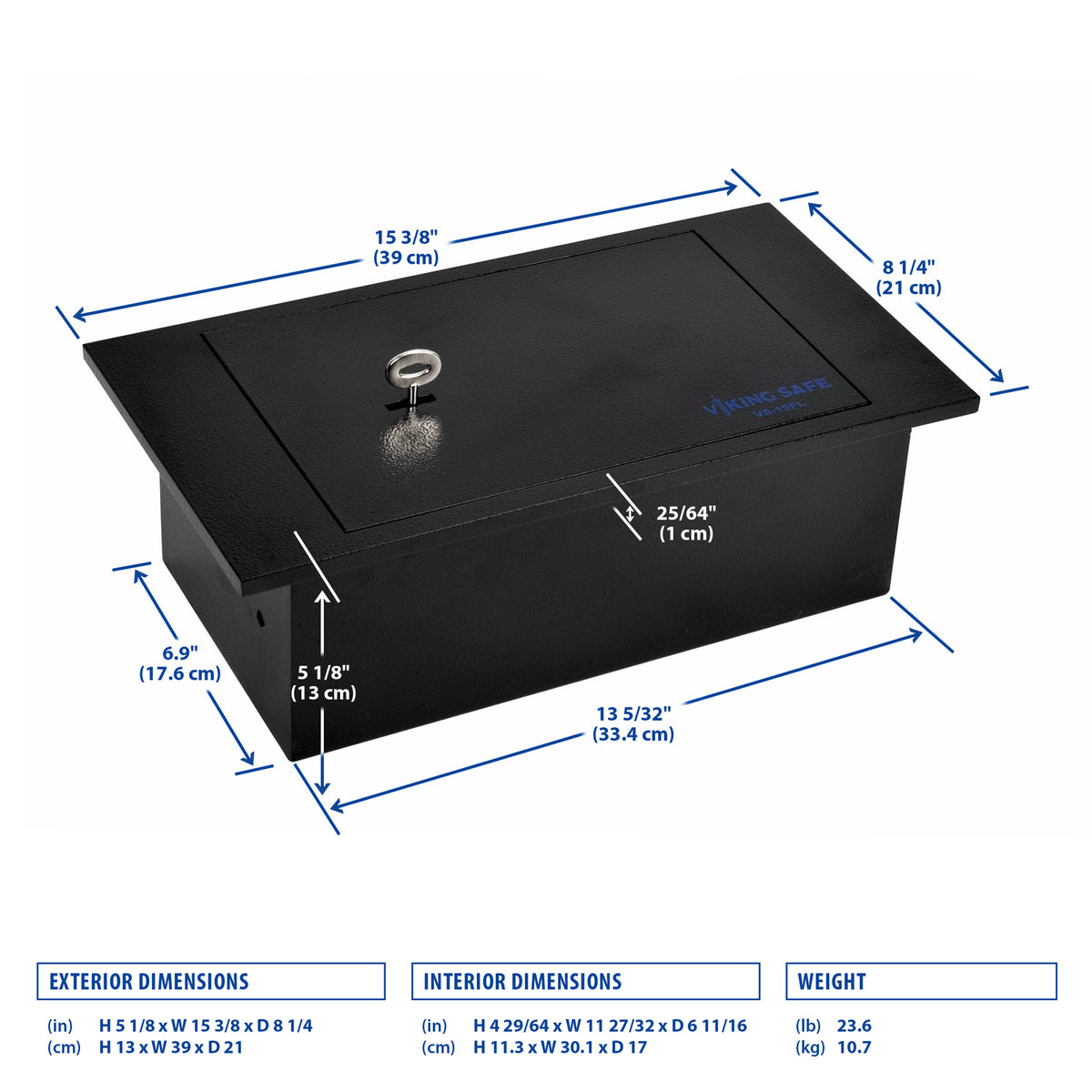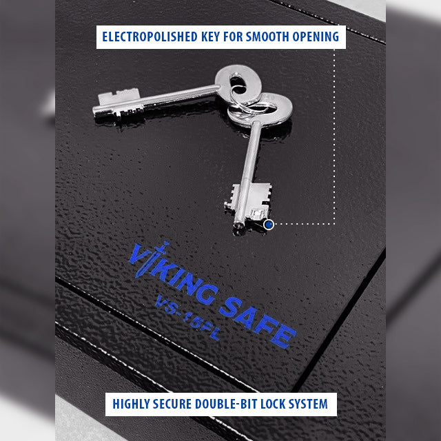 The Viking VS-15FL features a high security locking mechanism with a double-bit key. This advanced system ensures that only authorized individuals can access your safe. Two keys are included, providing a backup option for added convenience.