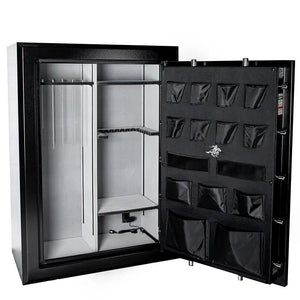 Beyond security, the Winchester Big Daddy Gun Safe excels in functionality and aesthetics. Available in a durable powder-coated slate or black finish, it features a sleek 5-spoke black chrome handle, and a bright white motion-sensing LED light kit for clear visibility of your firearms and valuables. The integrated Powder Docking System offers two 110V outlets and two USB pass-throughs. At the same time, the Deluxe Door Panel Organizer provides convenient access to handguns and secure storage for accessories and important documents. For any questions, feel free to call us at 800-207-2259 today!