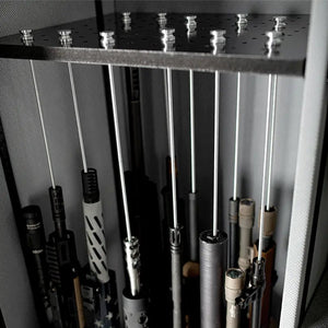 The burglary protection of the Winchester Big Daddy Gun Safe is equally robust. It displays a Residential Security Container (RSC) UL label while surpassing California Department of Justice standards. Bult with 11-gauge solid steel and continuous robotic welds, it features a 1/4" heat-treated steel hard plate, a titanium disk for drill resistance, and an auxiliary re-locker to secure boltwork during an attack. The safe includes 14 solid steel locking bolts - five deadlocking and nine active bolts - strategically placed on the door's top and bottom to thwart pry attacks. Pre-drilled mounting holes allow secure attachment to a solid surface, preventing tipping or unauthorized removal. This model also comes with Winchester's Lifetime Free Replacement Guarantee for added security against burglary.