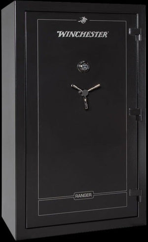 The outside of the Winchester Ranger 44 Gun Safe is painted a durable powdercoated gunmetal gray or black finish. A 3-spoke black, chrome vault handle is standard. Inside is a single power outlet to plug in items such as a light kit, dehumidifier rod or other accessories. Adjustable shelving system gives you easy-access to your rifles. Collector barrel racks are also standard with auxiliary shelves for interior customization to fit your storage needs.